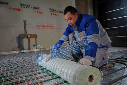 第五步:鋪設硅晶網。我們用的是德國威能定制的地暖專用硅晶網。便于地暖管材的安裝、施工速度較快,在地暖硅晶網的上方要固定地暖管材。可增強屋面的承載能力,避免地面開裂、裂紋、坍塌等不良現象的發生。地暖硅晶網同地暖回填層融和性高,熱傳導性增強,可促進熱的均勻散熱。最重要的一點就是保溫防裂,地暖硅晶網在建筑工程中就是一種保溫防裂材料,施工效果非常好,一直得到建筑行業的信賴。